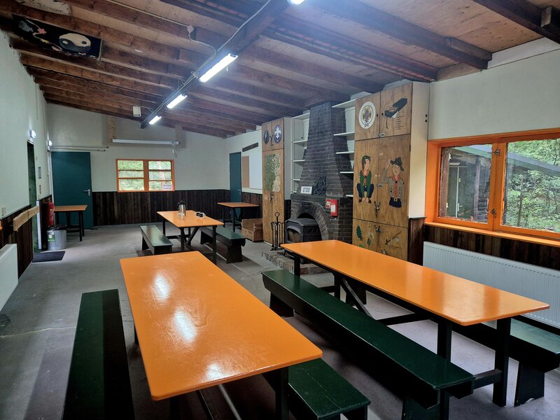 De speelzaal is zo omgetoverd tot eetzaal, waar jouw kampmaaltijd de buiken vult. Natuurlijk staan er tafels, stoelen en banken om iedereen een plek te geven. Indeling hebben we bedacht, maar tijdens je kamp kun je zelf gerust iets verzinnen.