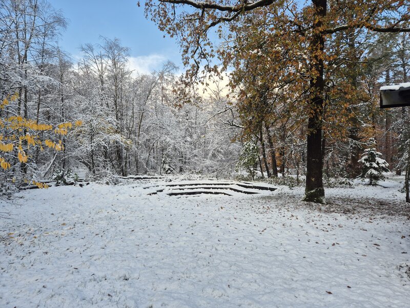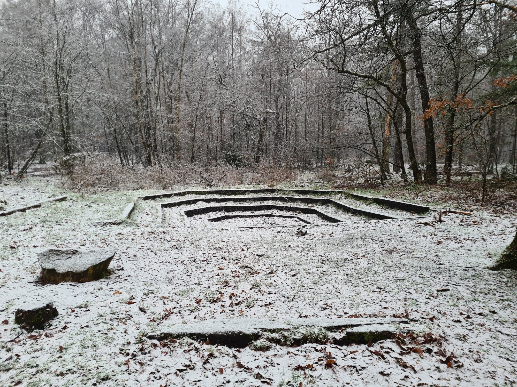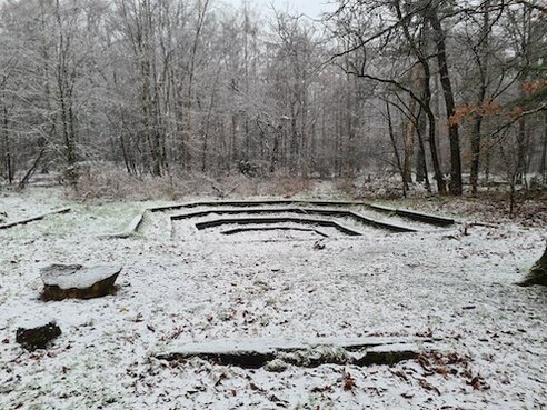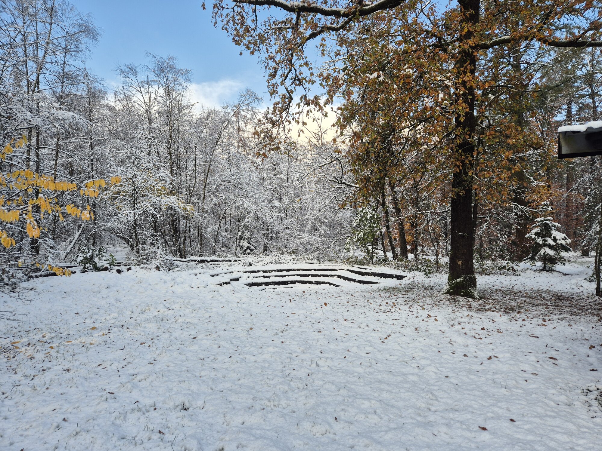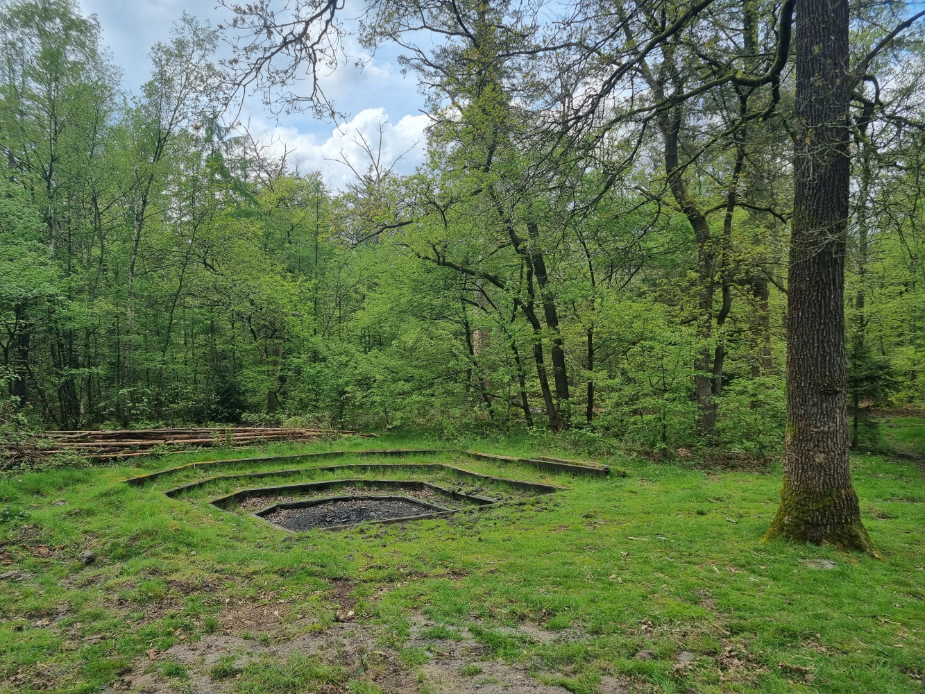 Achter de blokhut ligt een ruime kampvuurplaats, waar een gezellig kampvuur kan worden gehouden. Afhankelijk van het weer natuurlijk.
