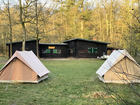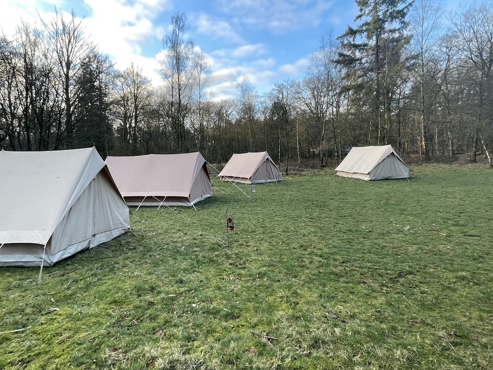 Midden in het bos je tent opzetten. Op een open plek hebben we ruimte voor je tentenkamp. Met plekjes in de zon en ook genoeg schaduw. Natuurlijk is er stromend water en zijn er toiletten en een douche. En voor de echte scouts een kampvuurplaats. Kortom we ontmoeten graag je tent op ons terrein.